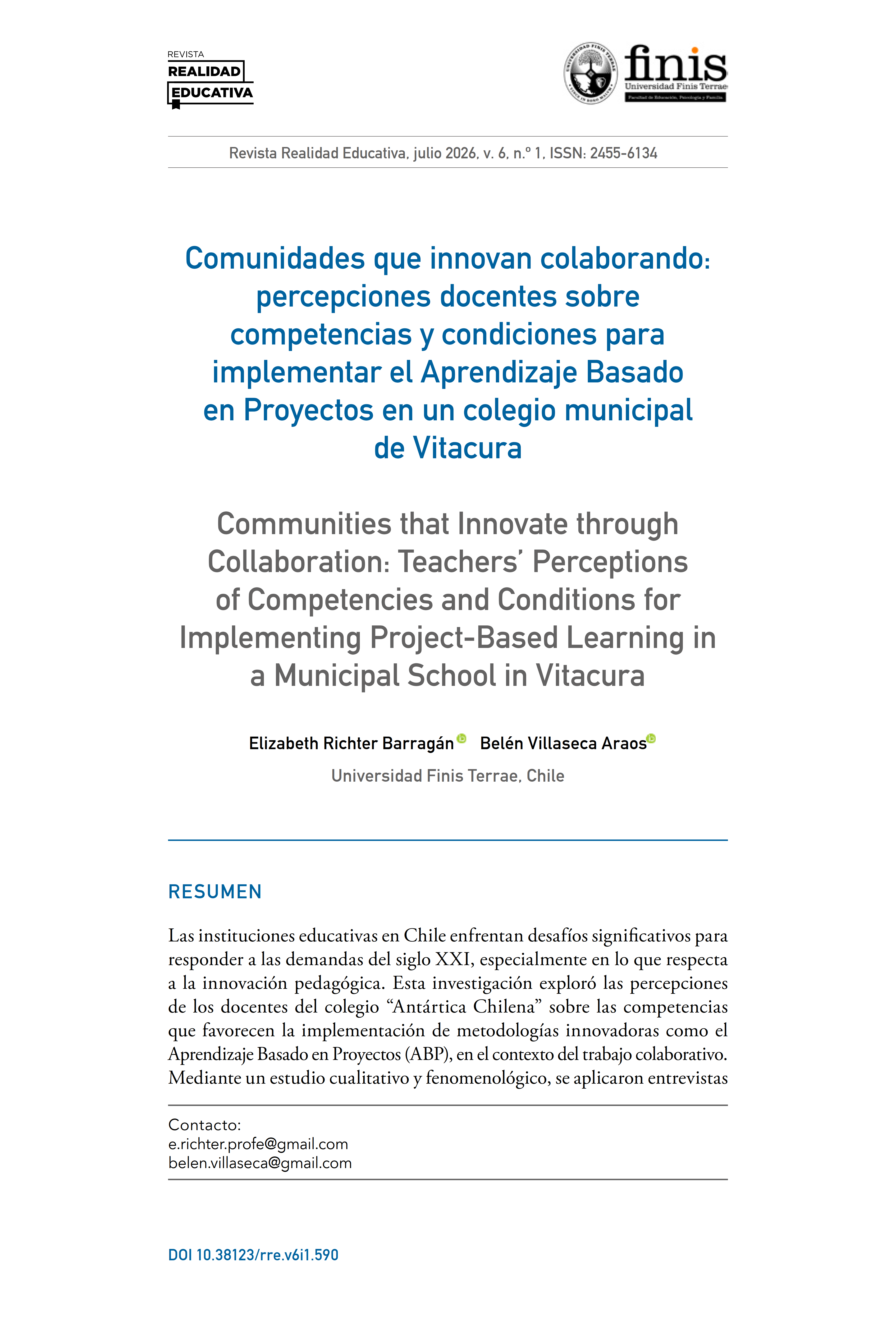Percepciones docentes sobre competencias y condiciones para implementar el aprendizaje basado en proyectos en un colegio municipal de Vitacura