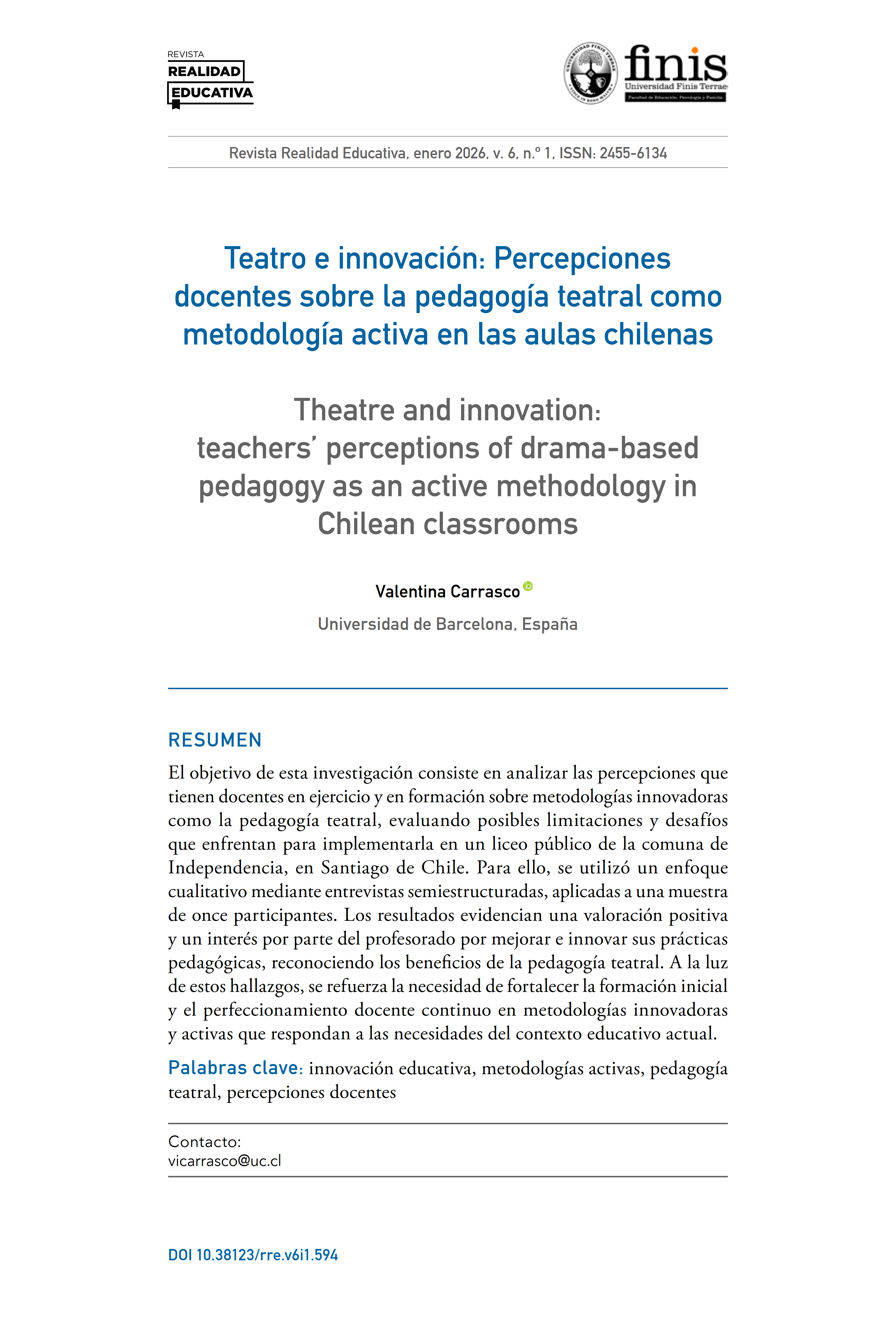 Teatro e innovación: Percepciones docentes sobre la pedagogía teatral como metodología activa en las aulas chilenas