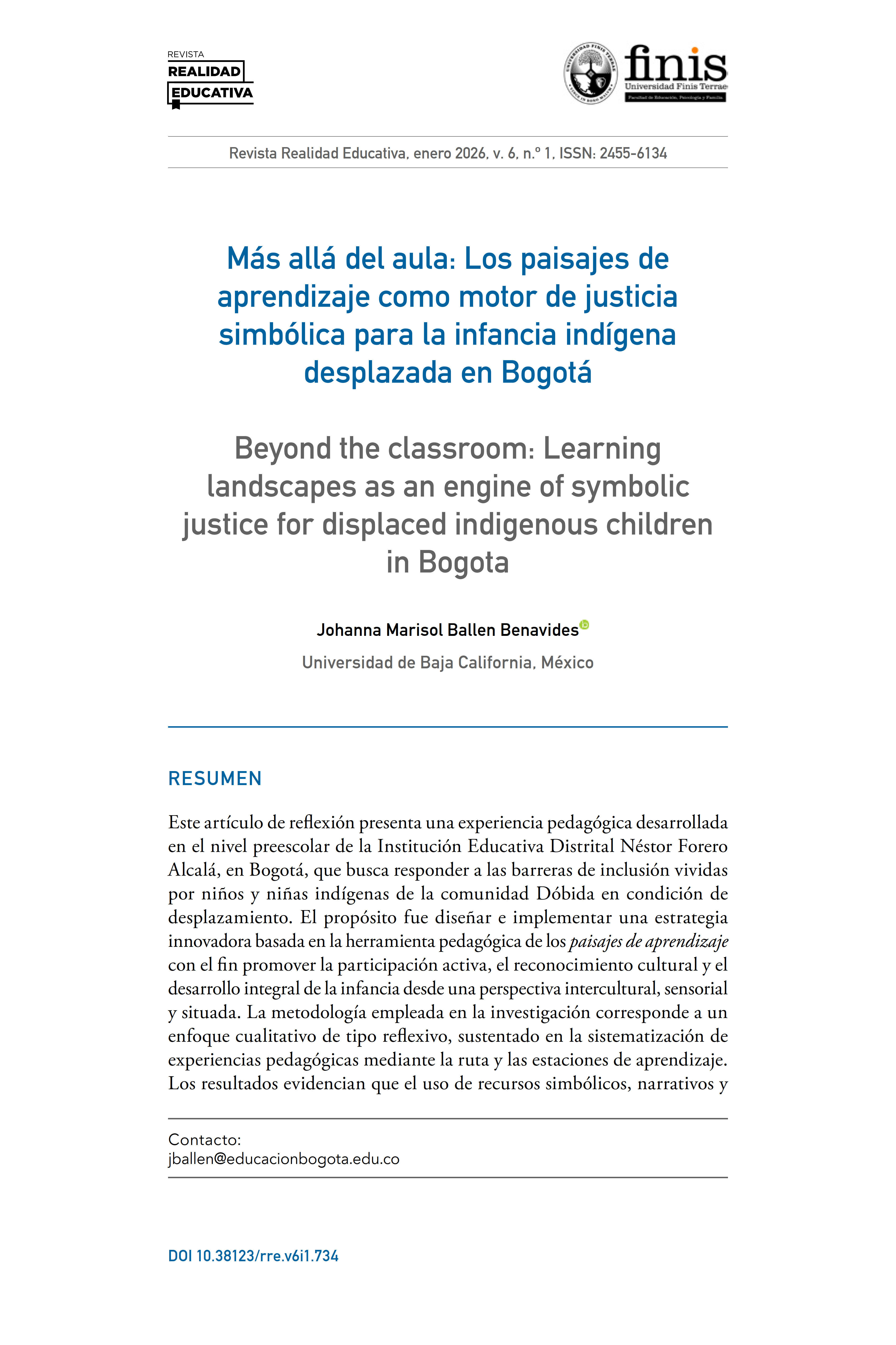 Más allá del aula: Los paisajes de aprendizaje como motor de justicia simbólica para la infancia indígena desplazada en Bogotá